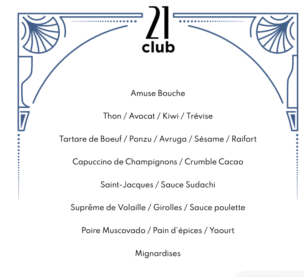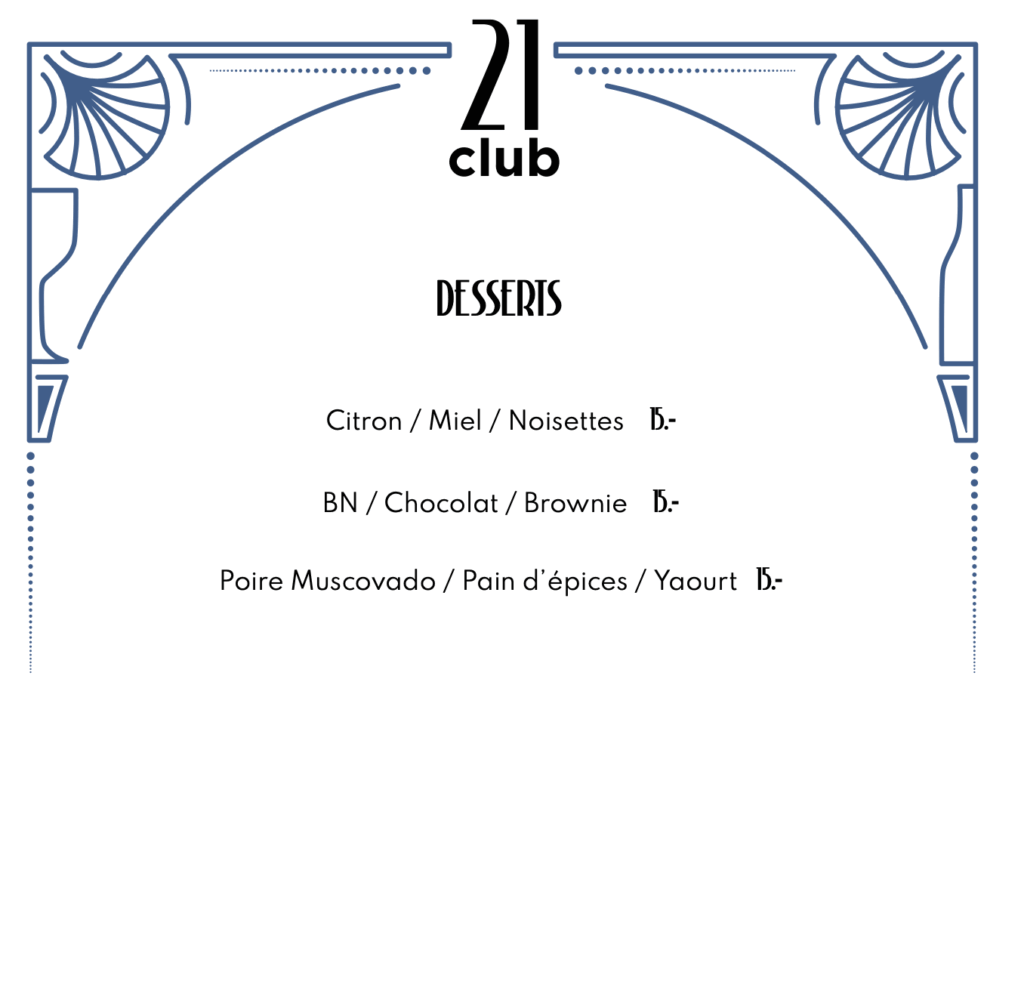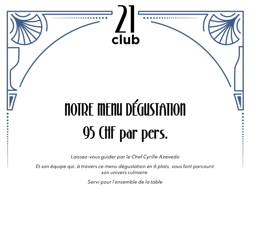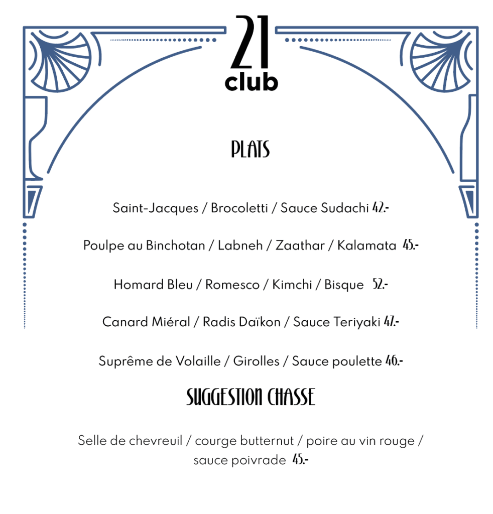Check Out notre menu à la carte Menu menus dégustation Our chef specials menu Discover our menu english menu cocktails Our bartender selection Cliquez ici Instagram Tiktok Liens rapides Accueil Réservation Privatisation Histoire Food Cocktails Vin Contact Accueil Réservation Privatisation Histoire Food Cocktails Vin Contact Instagram Tiktok Informations Rue Henri Blanvalet, 1207 GE contact@21club.ch + 41(0) 79 948 52 48 MARDI-MERCREDI: 17.30-01:00 JEUDI: 17.30-02:00 VENDREDI-SAMEDI: 17.30-04:00 DIMANCHE-LUNDI: FERME